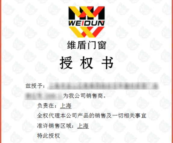 維盾門窗所有官方專賣店、分公司、代理商均有維盾門窗的官方授權(quán)書,去門店購買的時(shí)候可以查看其正規(guī)授權(quán)和相關(guān)經(jīng)營(yíng)資質(zhì)。