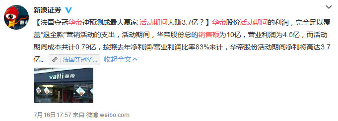 法國隊奪冠了, #華帝退全款# 也上了新浪熱搜。